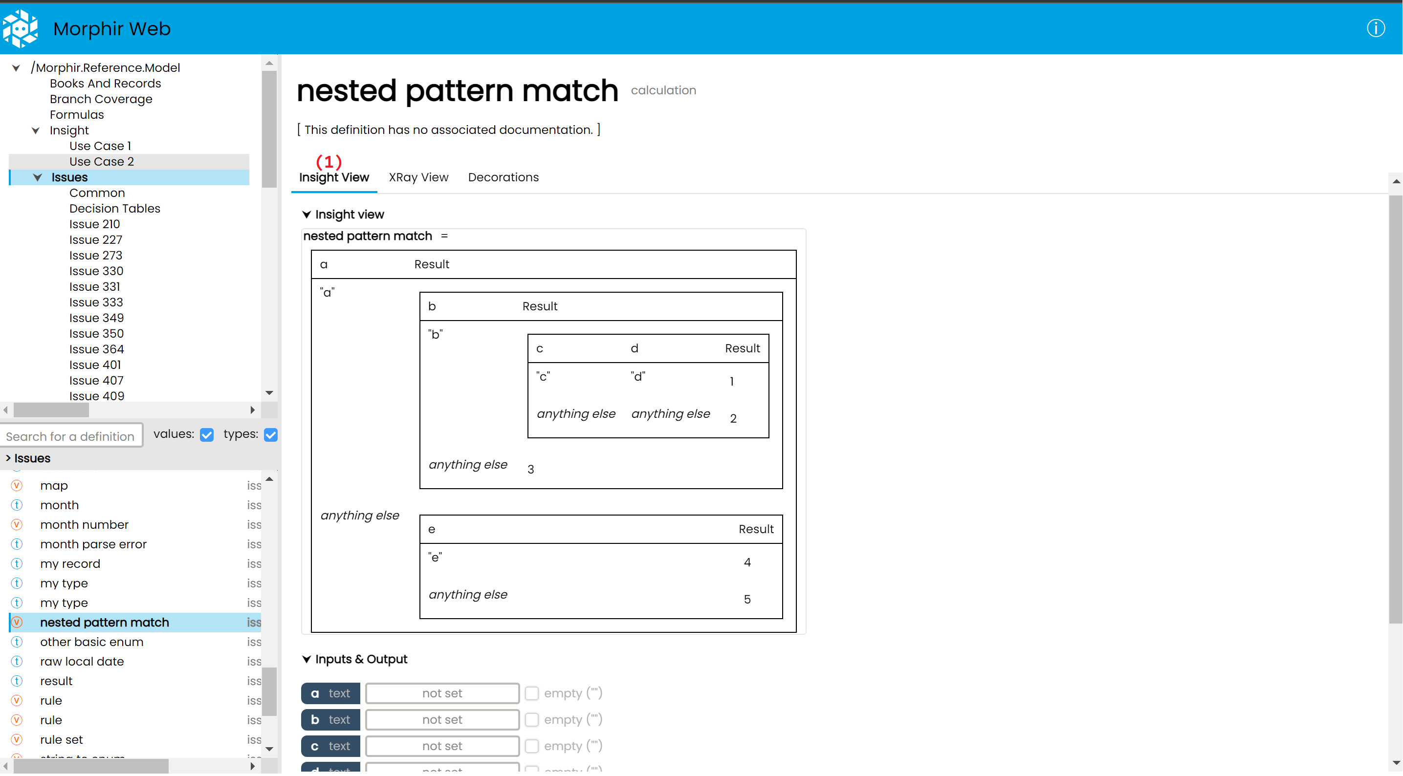 The Insight view aims to provide the user with a user friendly, understandable, interactive visualisation of a given Morphir definition.